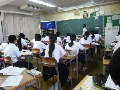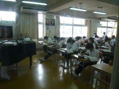 4限、2年2組は音楽、鑑賞の時間でした。2年3組は理科、鉄と硫黄の化合について学習しています。
