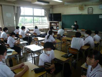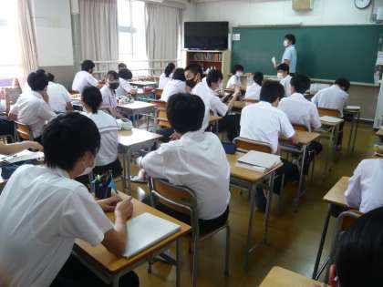1限、3年生は総合の時間です。面接練習に向けての取り組みです。3年1組、2組の様子です。