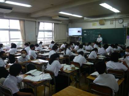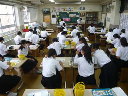 3限、1年1組は数学、文字式に取り組んでいます。1年2組は美術、ユニットパターンの作品、ずいぶん出来上がってきました。1年3組は社会、アジアNIESについて学習しています。