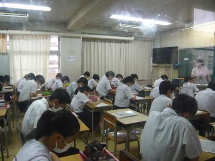 4限、3年3組は国語、読解問題に取り組んでいます。3年4組は数学分割授業、2次方程式の学習です。
