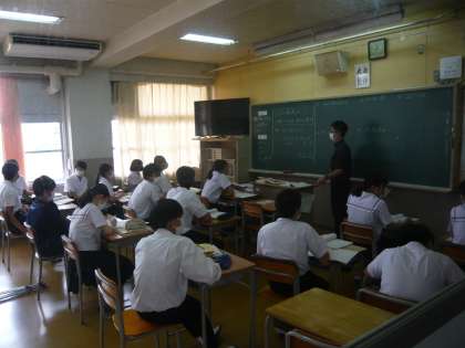 4限、3年3組は社会、都道府県のテストを返してもらっていました。3年4組は数学分割授業、「因数分解を使って2次方程式を解く」ということにトライしていました。