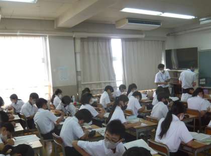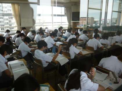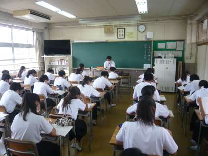 1限、1年生の道徳は、「終わりなき挑戦」という教材です。