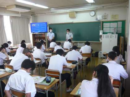 1限から4限、3年生はクラスごとに租税教室を実施しています。講師として税理士の方にお越しいただき、税金がなぜ必要なのかや、税をめぐる日本の現状などを教わりました。