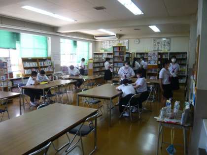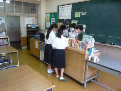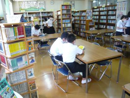 昼休みの図書室です。この後も、多くの生徒が訪れていました。