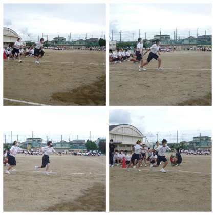 3年学年種目「全員リレー」です。抜きつ抜かれつの白熱したリレーでした。