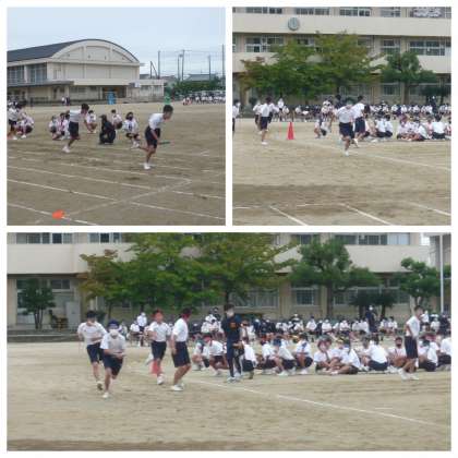 男子4×200mリレーです。体育大会の最後の種目にふさわしい白熱したレースになりました。