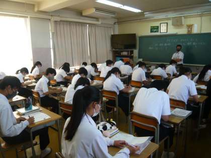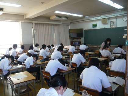 5限、2年1組は国語、2年2組は理科、どちらもプリントの問題に取り組んでいました。