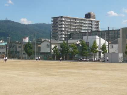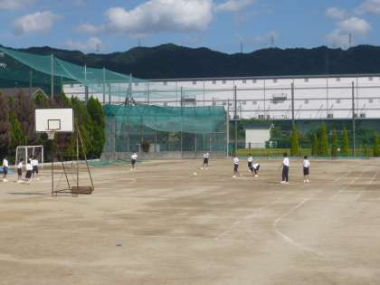 5限、1年1・2組の男子体育は、グラウンドでキックベースボールをしていました。