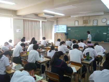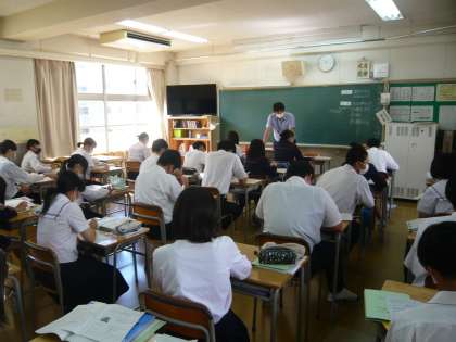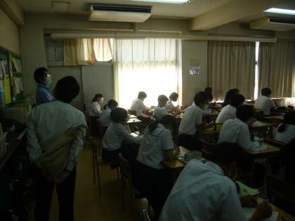 3限、3年3組は理科、太陽系の天体の学習をしています。3年4組は社会、授業の後半に行う確認テスト(単元テスト)に向けて勉強しています。