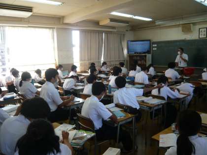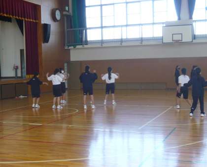 3限、1年1・2組は体育、女子はダンス、男子はキックベースボールの授業です。1年3組は英語、3人称単数現在形の問題に取り組んでいます。