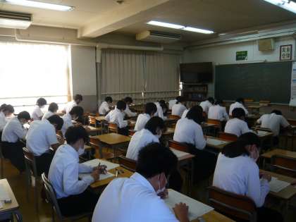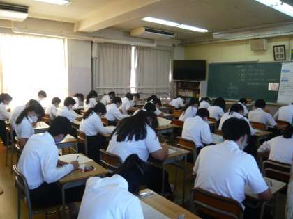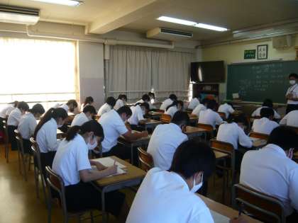 中間テスト1日目、1限、2年1・2・3組の様子です。