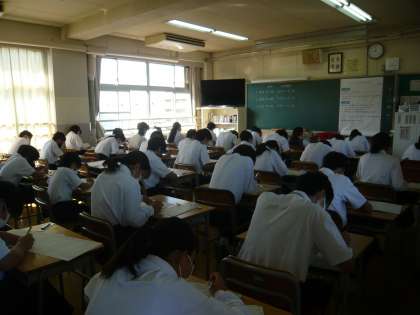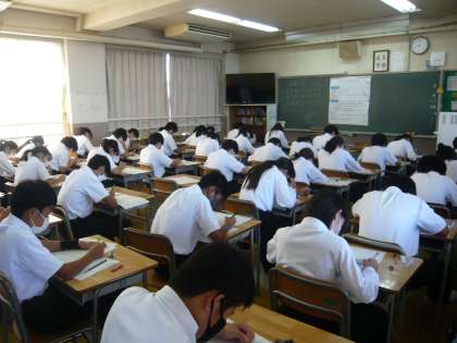 中間テスト1日目、1限、1年1・2・3組の様子です。