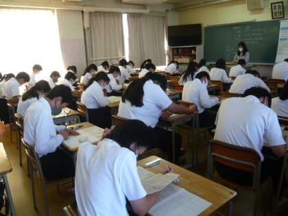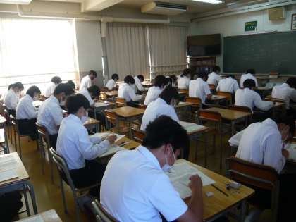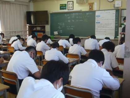 中間テスト2日目、1限、2年1・2・3組の様子です。