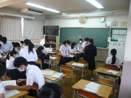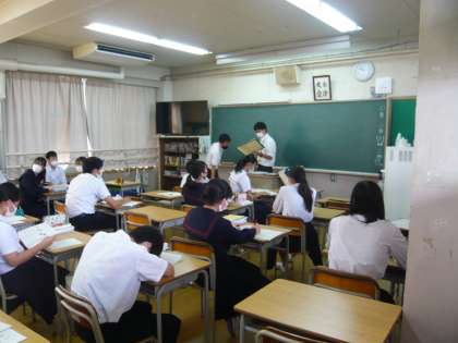 2限、3年1組は社会、3年2組は数学、ともにテスト返しです。