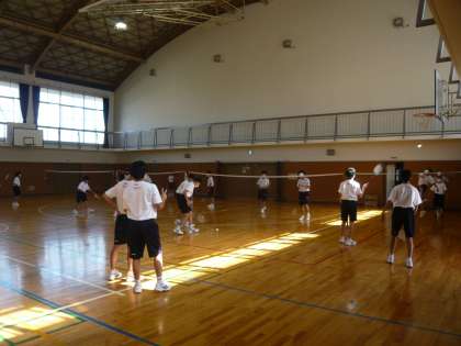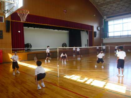 3限、1年1・2組は体育、男子は体育館でバドミントンです。