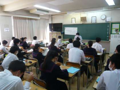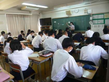 2限、3年3組は理科、傾斜をすべる運動について考えているようです。3年4組は国語、俳句の作品をこの後みんなで見合い、評価し合うようです。