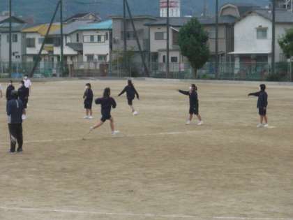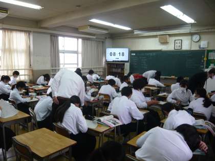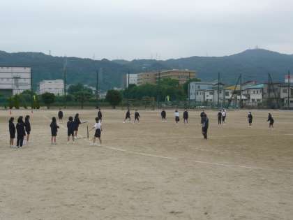 5限、2年1・2組の女子は、グラウンドでティーボールです。2年3組は英語、人称代名詞の発展問題に挑戦しています。