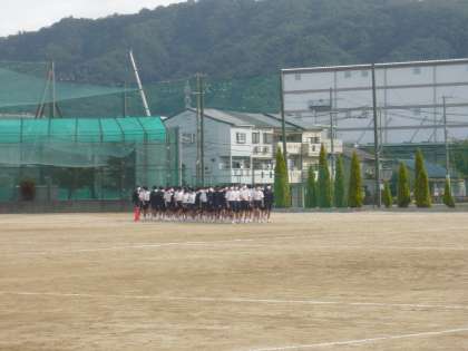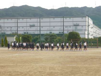 グラウンドで男子の集団行動練習をしていましたので、写真を撮りました。体育館の女子の様子は見に行けませんでした。ごめんなさい。