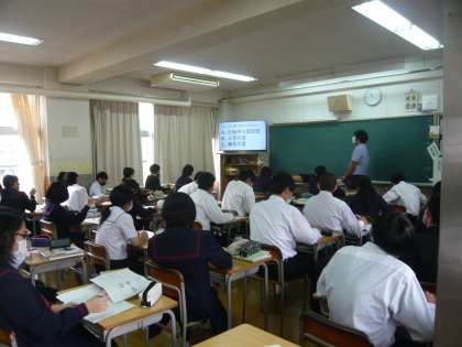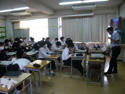 3限、3年3組は理科、恒星の学習です。3年4組は社会、最初の15問問題の13問目を解いています。