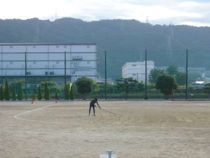 早朝より、体育科の先生がグラウンドの整地をしてくださっています。