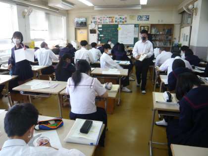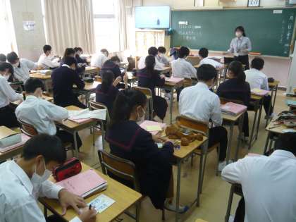 3限、3年3組は国語、俳句の展示作品の名札を書いて貼っていました。3年4組は美術、陶芸皿のデザインを考えています。