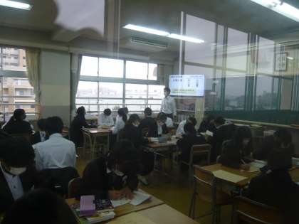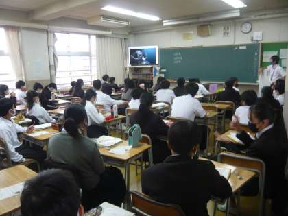 2限、1年1組は理科、音の伝わり方について学んでいます。1年2組は社会、オーストラリアの地理です。1年3組は英語、今日はこの後、文化祭の展示物を作成するようです。