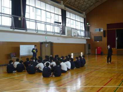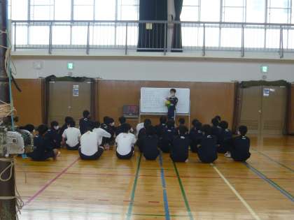 3限、授業力向上研修として、市の授業アドバイザーの先生にお越しいただき、3年1・2組男子体育の授業を見ていただきました。