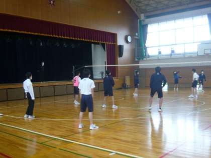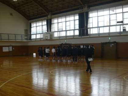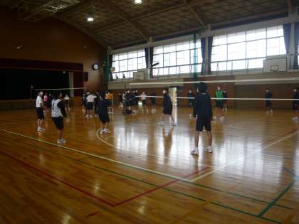 バレーボールの授業でした。生徒全員、楽しそうにバレーボールのゲームをしていました。自分たちのグループの課題は何か、改善点は何かなど、グループ内で交流しながらゲームをしていました。