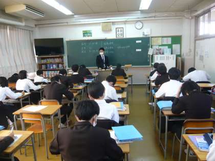 5限、2年1組の数学の授業です。2年2組国語、2年3組社会の授業も撮影したのですが、カメラの調子が悪いのか、記録されていませんでした。ごめんなさい。