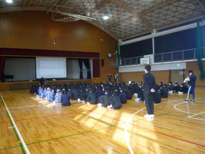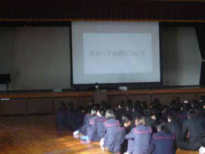 紹介が前後しましたが、1限、3年生は体育館で学年特活を行いました。修学旅行に向けての取組みです。