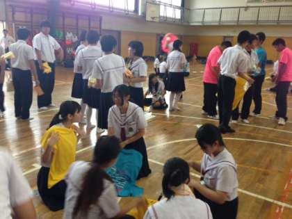 日曜日からいよいよ修学旅行に出発です。今日は六時間目に最終確認と、クラスTシャツの配布を行いました。配られたらすぐに着ている生徒もいました。クラス全員で着るのが楽しみですね。