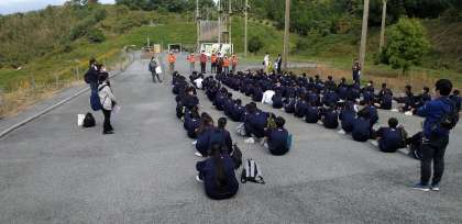 ひこねスカイアドベンチャーに到着し、開講式を行っています。