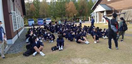 メタセコイア並木の横で休憩です。ジェラートも食べます。