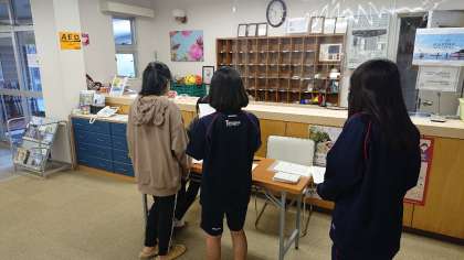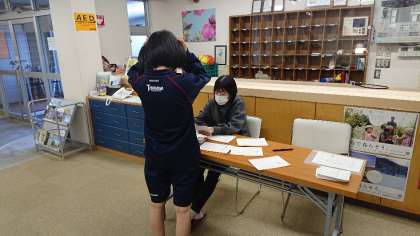 保健係による健康チェックです。体調不良の生徒はいませんでした。本日も元気に活動できそうです。