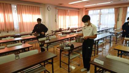 片付けをしています。食事係が最後の片付けを担当しています。