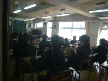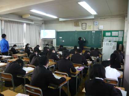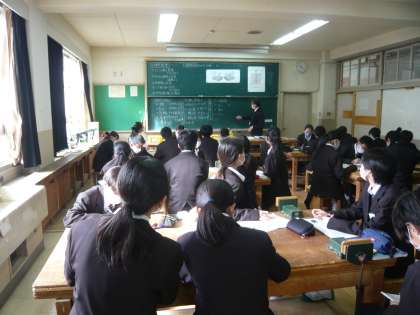 2限、1年1組は技術、木工室でのこぎりの使い方等の説明を聞き、これから実習に入るところです。1年2組は国語、漢文を勉強しています。1年3組は音楽、シューベルトの曲について学びます。