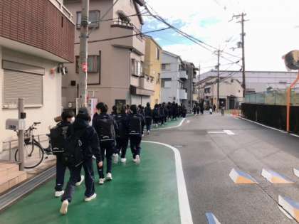 体育館での出発式を終え、キャンピィだいとうに向けて出発しました。