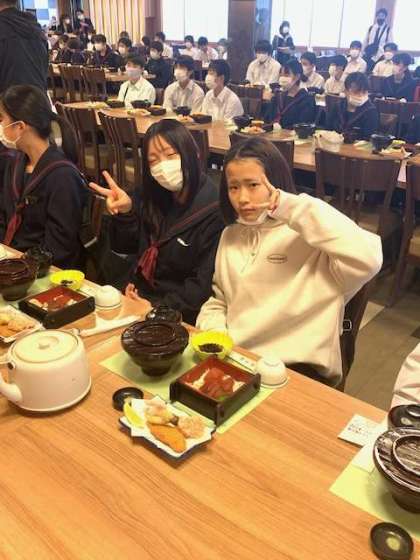 全員が岩戸屋で郷土料理を食べました。