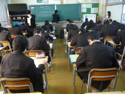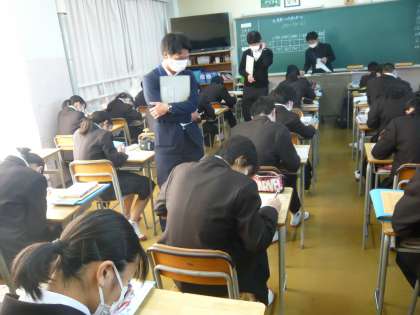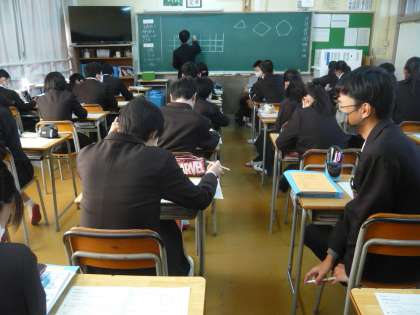 本日は、2限2年数学、3限2年国語のミニグループ研を行いました。2限、2年2組数学の授業の様子です。多角形の内角の和を求めることができるようになることが今日のめあてです。