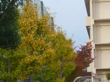 校庭の木々も色づいています。また、さざんかの花が咲き始めました。