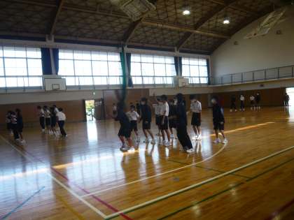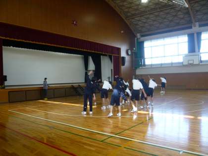 3限、1年1・2組男子体育は、体育館でダンスの授業です。みんな楽しそうです。