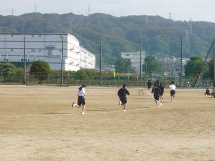 3限、1年1・2組女子体育は、グラウンドで400m走です。かなり速い生徒もいます。