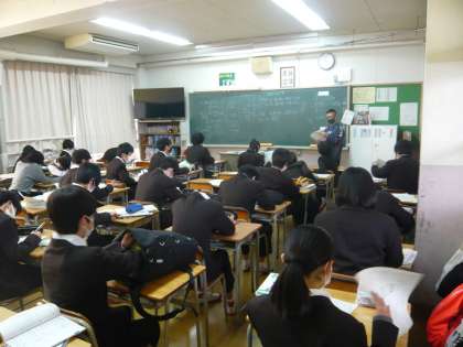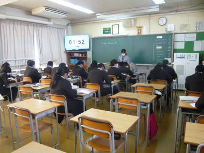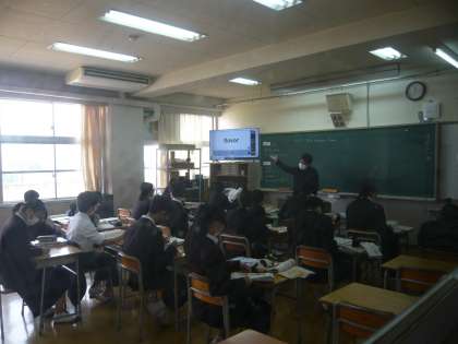 4限、2年1組は理科、オームの法則を活用して問題を解いています。2年2組は英語分割授業、同じくらのものをくらべる文を作れるようになるのが目標です。