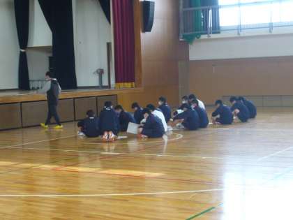 4限、2年2組は体育、女子はグラウンドでトラック走の授業、男子はダンスが終わったところでしょうか。
