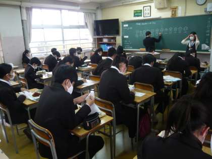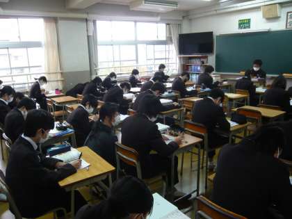 2限、3年1組は数学、テスト対策です。3年2組は英語、この後Listeningの演習を行うようです。