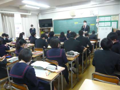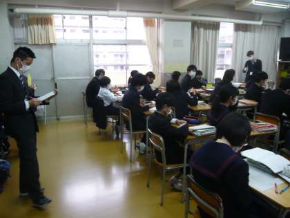 3限、市教委から指導主事の先生が来校され、3年4組の英語の授業を参観していただきました。AETの先生とのTTの授業です。