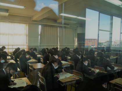 2学期末テスト1日目、1限、1年1・2・3組の様子です。