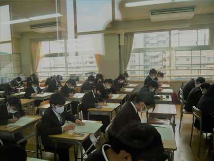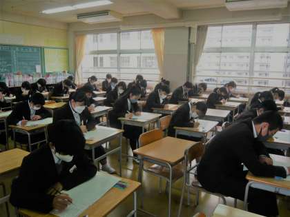 2学期末テスト2日目1限、2年1・2・3組の様子です。