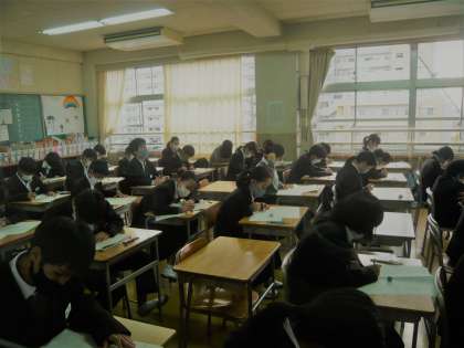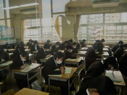 2学期末テスト2日目1限、1年1・2・3組の様子です。