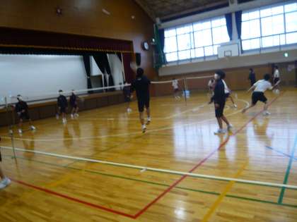 2限、3年3・4組男子体育は、体育館でバドミントンです。楽しそうですが、けっこう運動量も多いです。